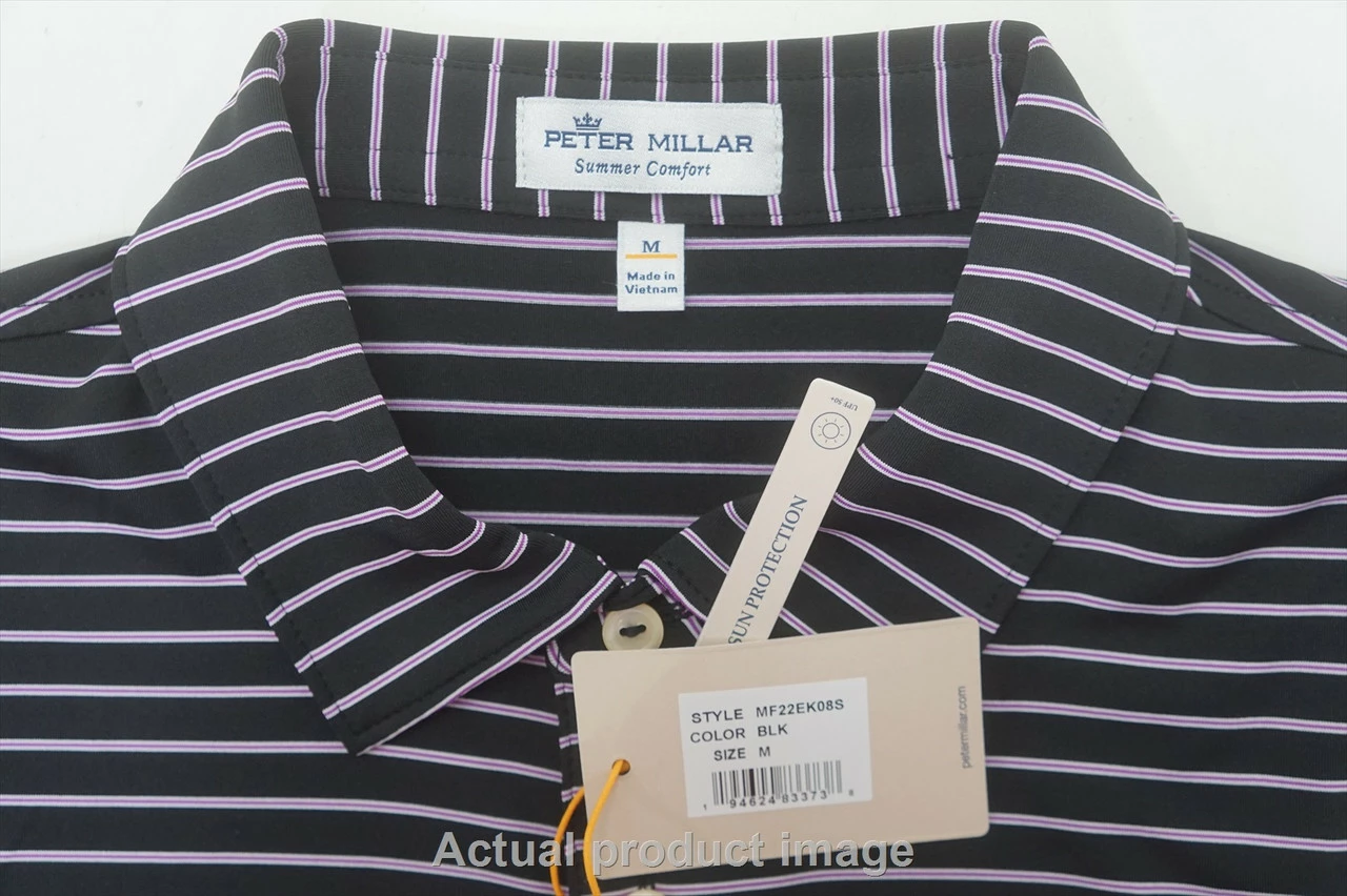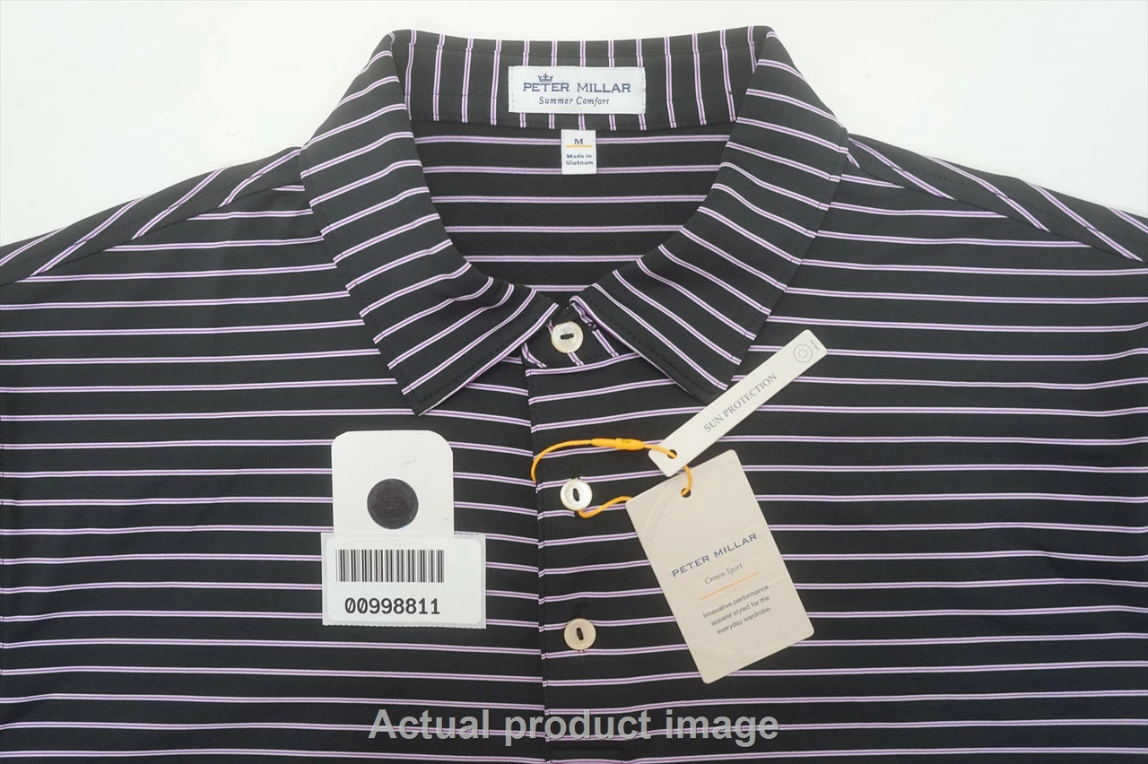 New Peter Millar Drum Performance Jersey Polo Mens Size Medium Black 735A 998811